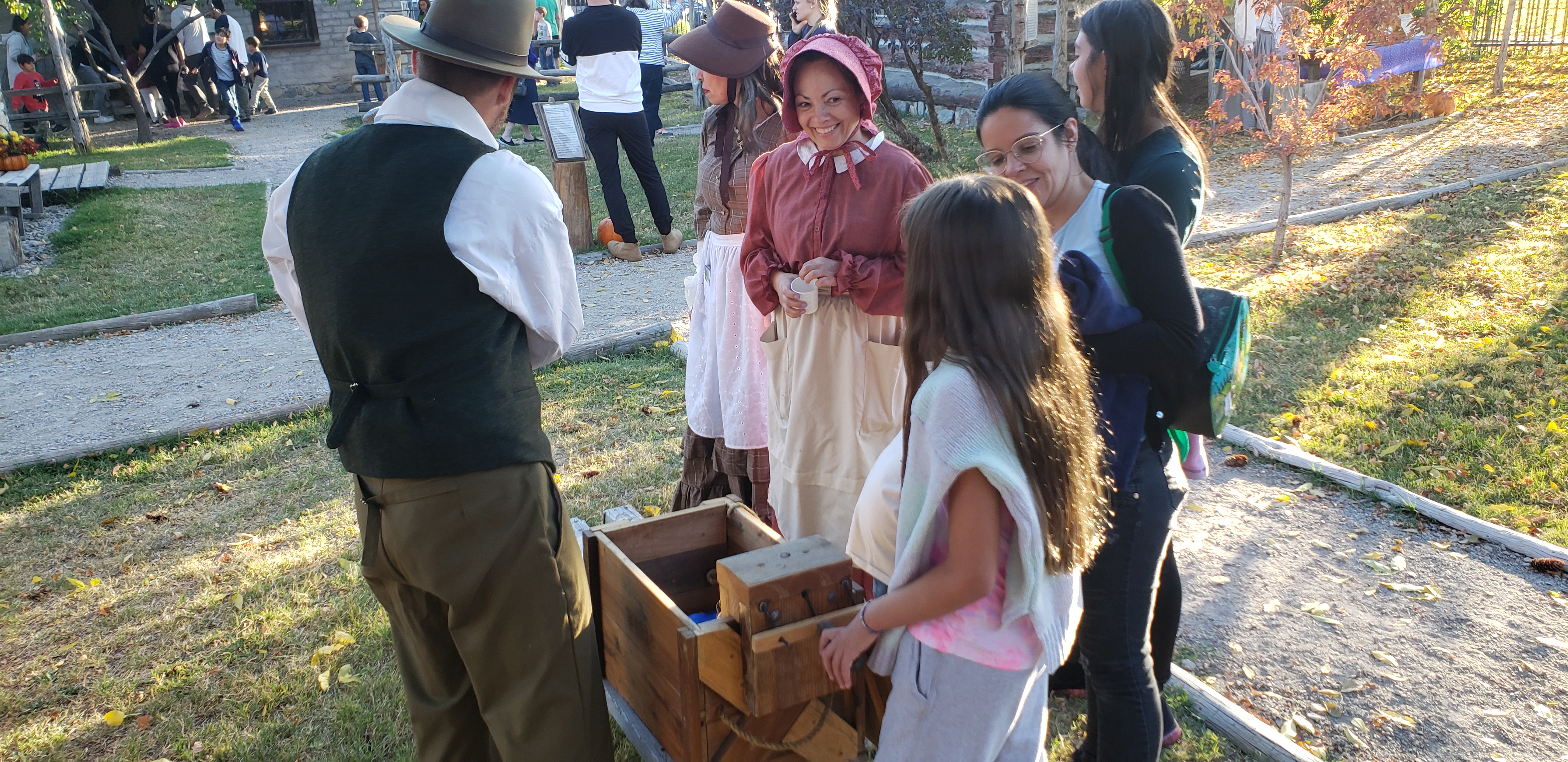 It was SO good to see you and to make new friends! We had storytelling in the School House, photo opps galore, costumes to try-on, an honest to goodness Apple Press, Blacksmiths and wood craftsman. There was plenty for the kiddos to do as well with candle making, cornhusk dolls, bucket building, rope making, pioneer games, handcart push and refreshments too. A special shoutout goes to Stubbs Farms who brought a trailer full of perfectly shaped pumpkins, squash & potatoes to sell! The D.U.P. even opened up their quilt vault to sell some of their wares as well. There was a true feeling of community, just like the pioneers experienced after their harvest when everyone came together in celebration of the hard work they had done. Thanks to everyone who came to our Autumn Harvest event and shared in the fun!